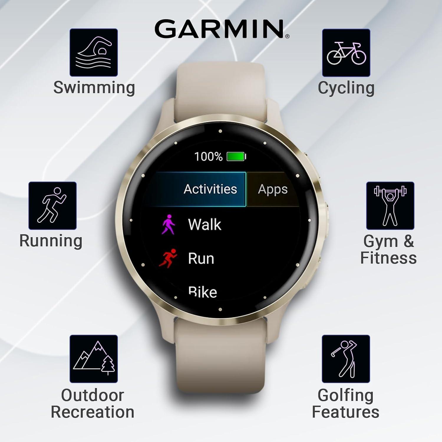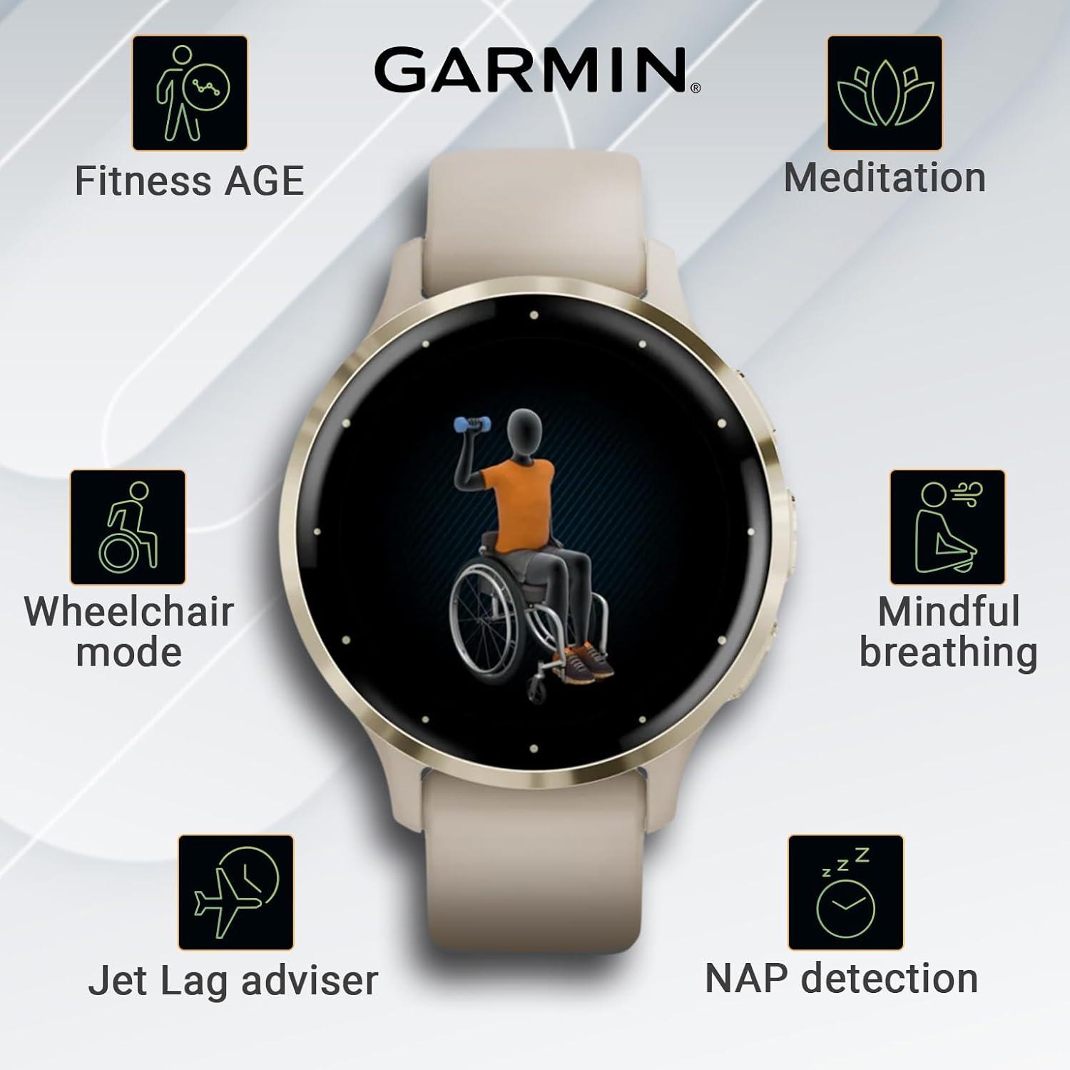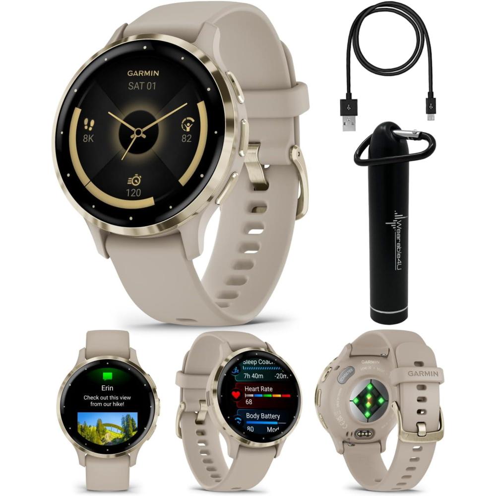 Wearable4U – Garmin Venu 3S GPS Smartwatch AMOLED Display 41mm Watch, Advanced Health and Fitness Features, Up to 10 Days of Battery, Wheelchair Mode, Sleep Coach, French Gray with Power Bank(Soft Gold/Ivory)