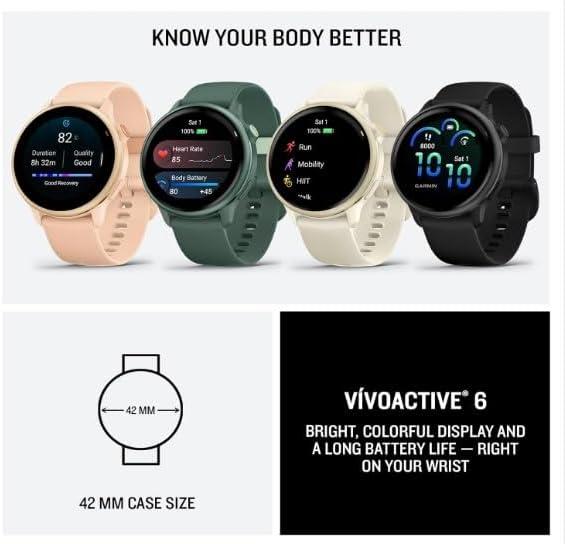 BRIGHT AMOLED DISPLAY. The Vivoactive 6 features a bright AMOLED display for clear visibility in any lighting. Enjoy up to 11 days of battery life in smartwatch mode, giving you an uninterrupted view of your health and fitness data without frequent charging.