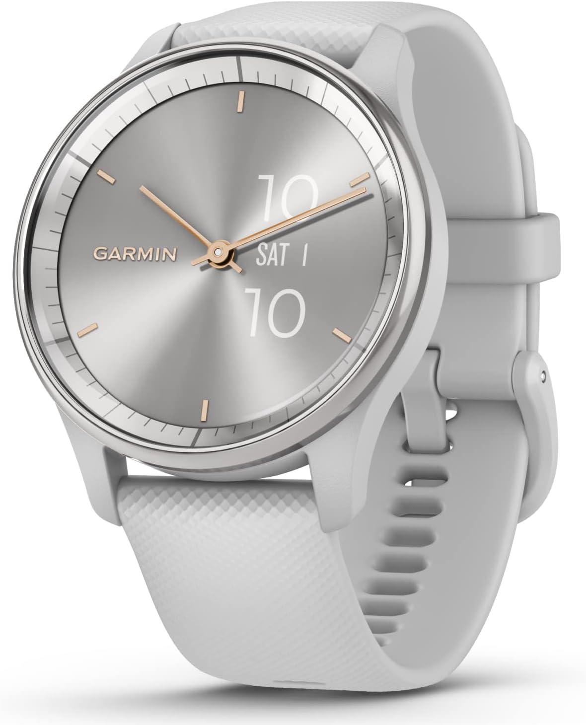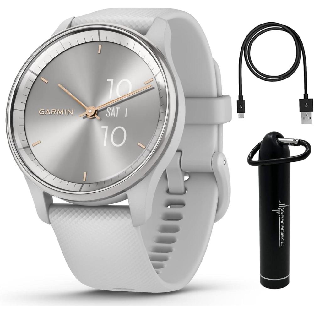 IN THE BOX: 1x Garmin vivomove Trend Smartwatch, Silver/Mist Gray, 1x charging/data cable, 1x Wearable4U E-bank (wa001), documentation