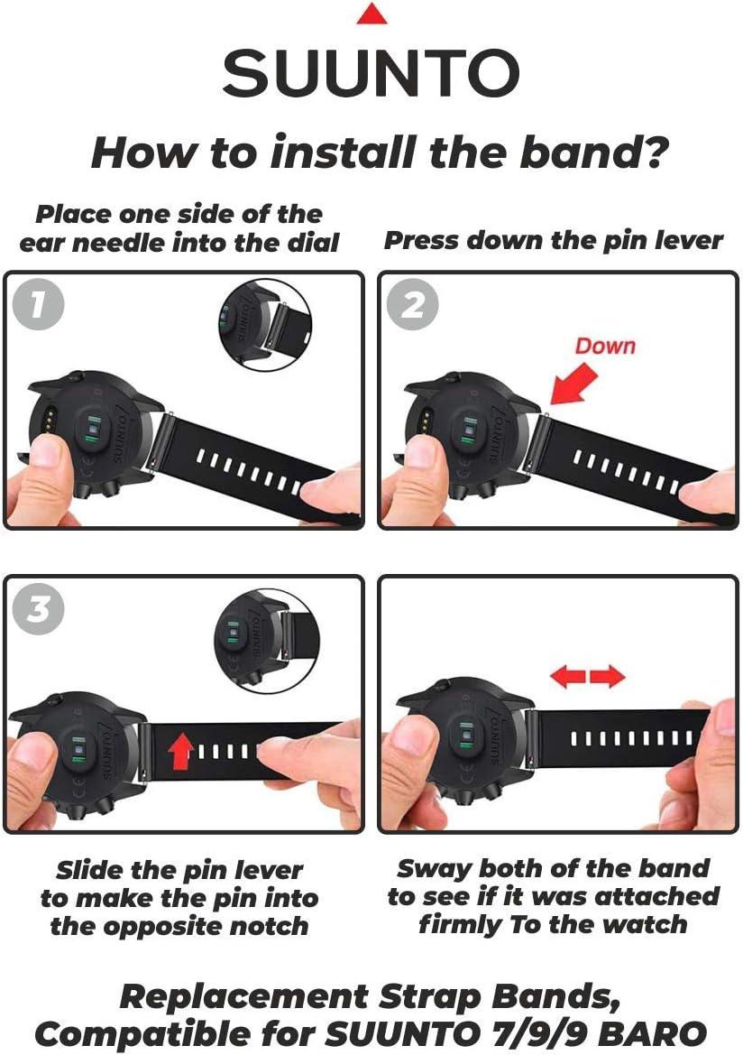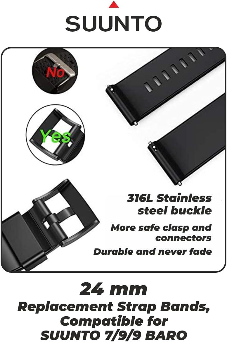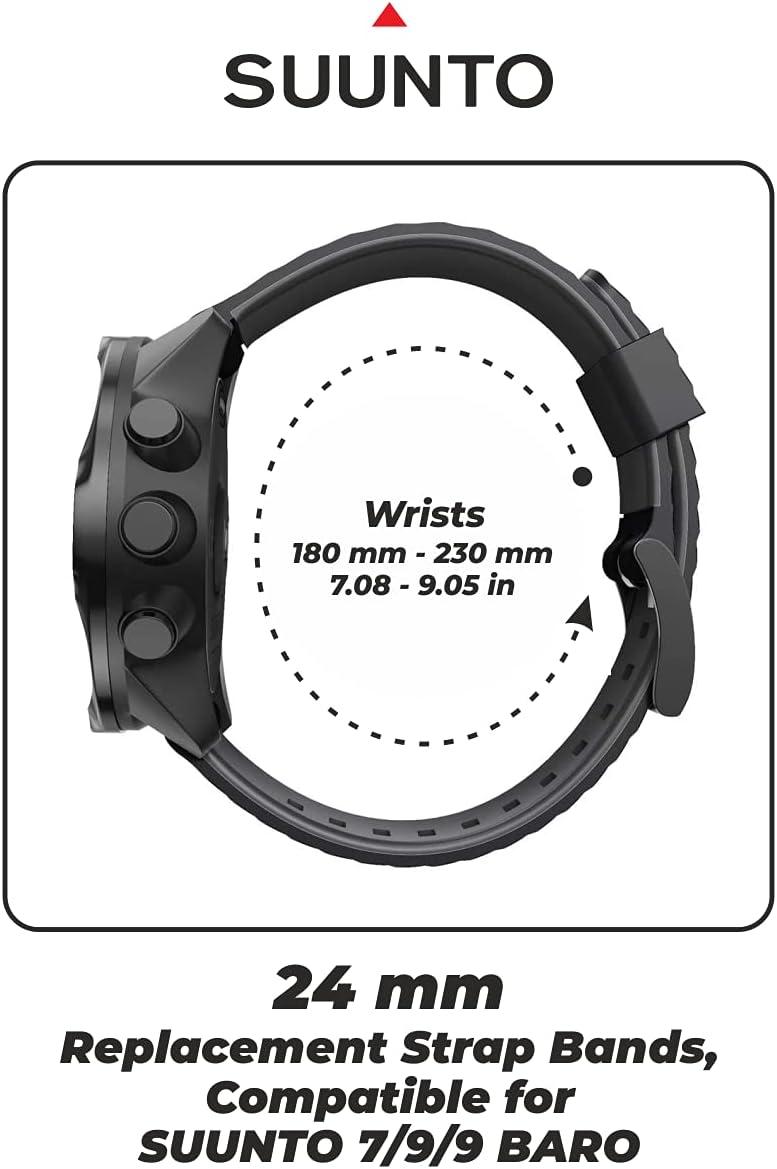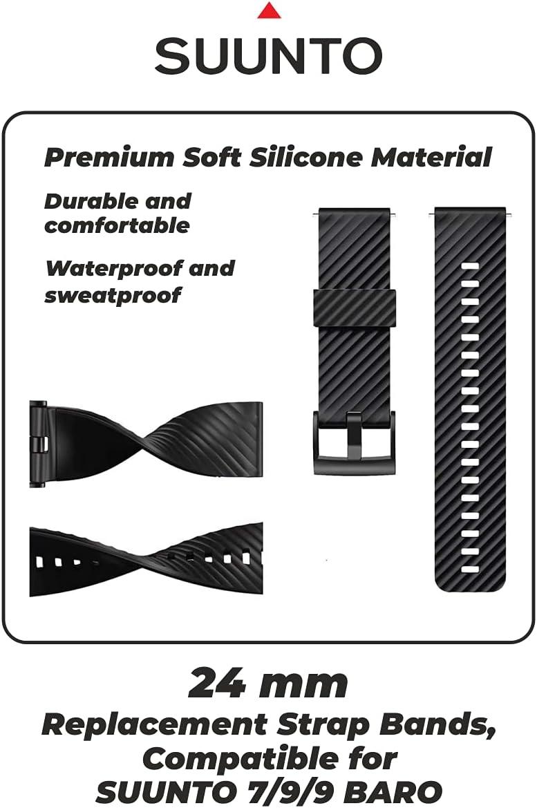 Wearable4U SUUNTO 7 / SUUNTO 9 Soft Silicon Wristband Strap 24mm QuickFix(Black)