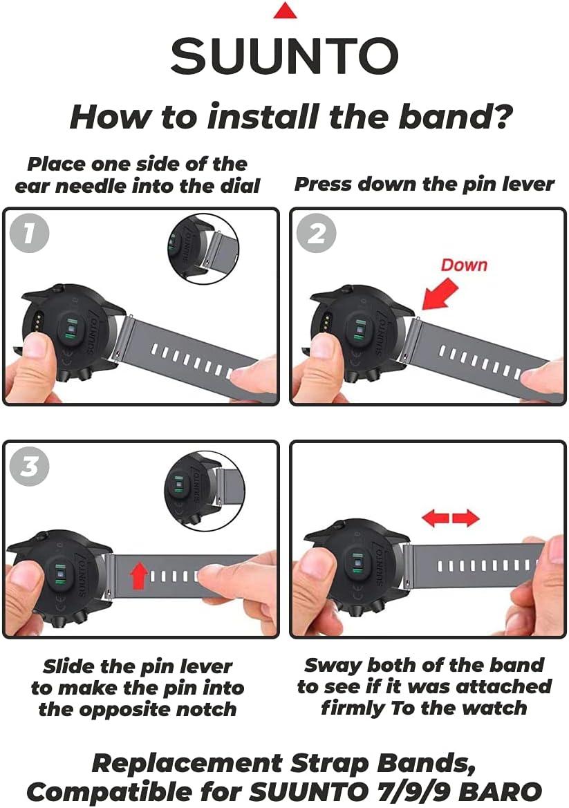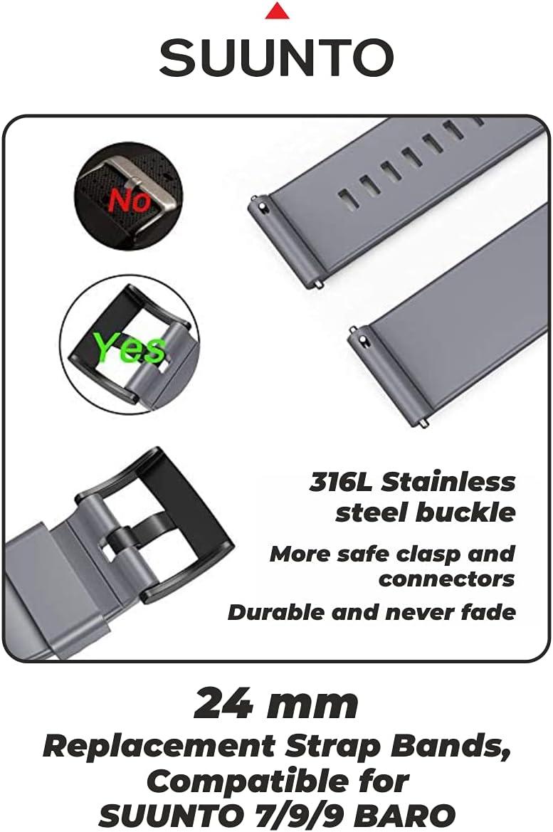 Wearable4U SUUNTO 7 / SUUNTO 9 Soft Silicon Wristband Strap 24mm QuickFix(Black/Gray)