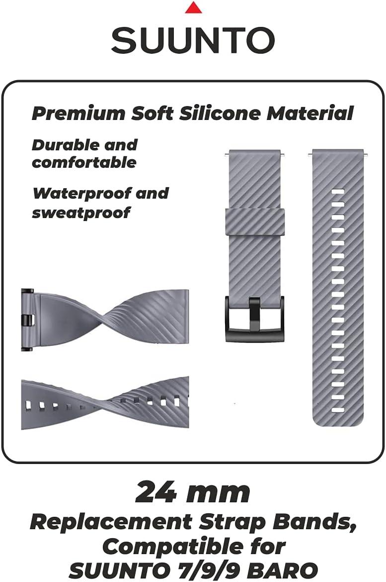Wearable4U SUUNTO 7 / SUUNTO 9 Soft Silicon Wristband Strap 24mm QuickFix(Gray)