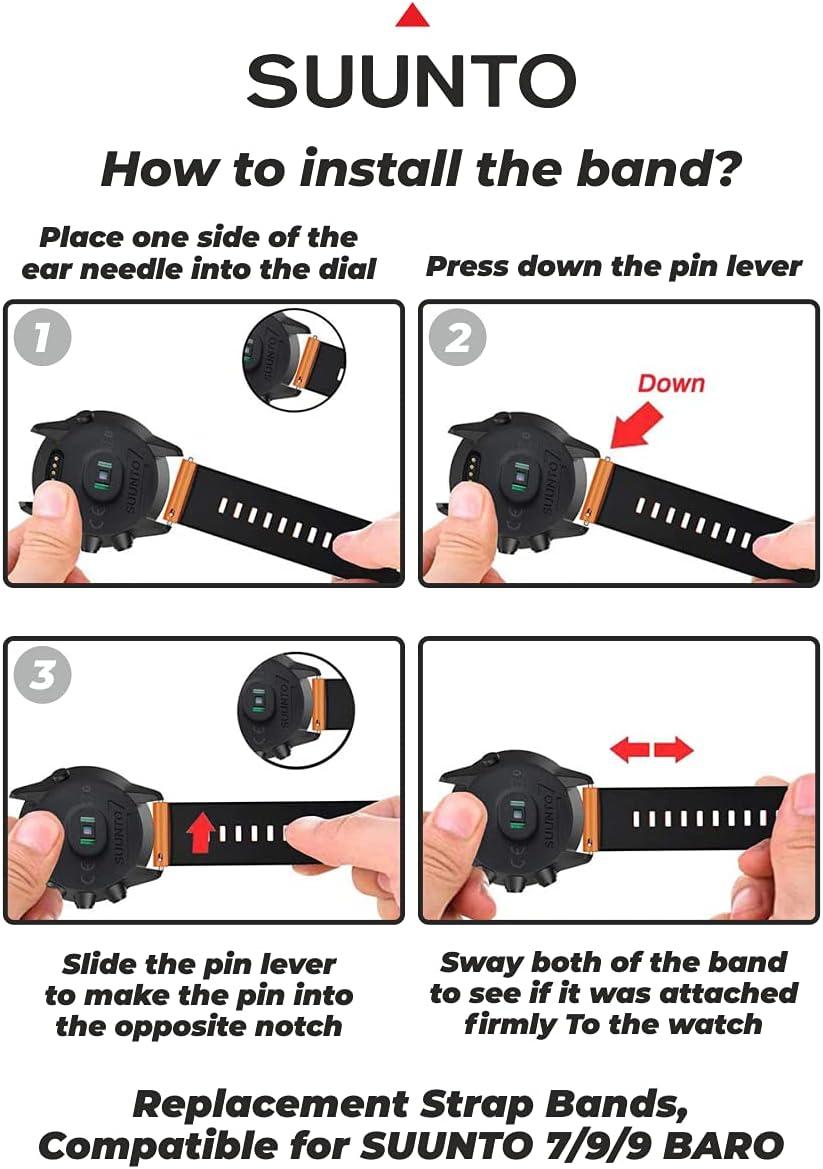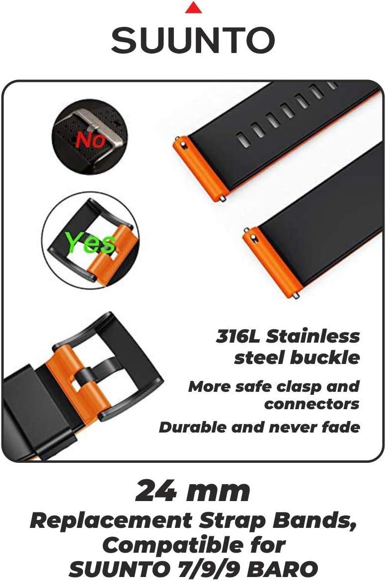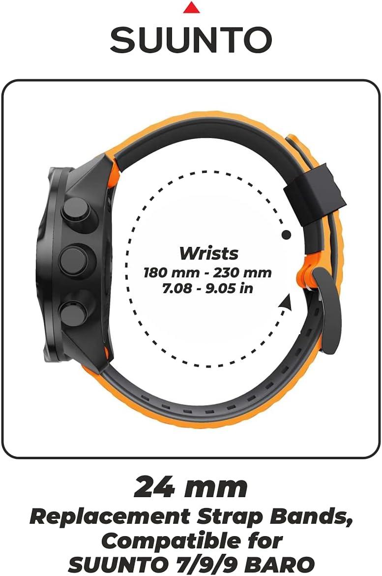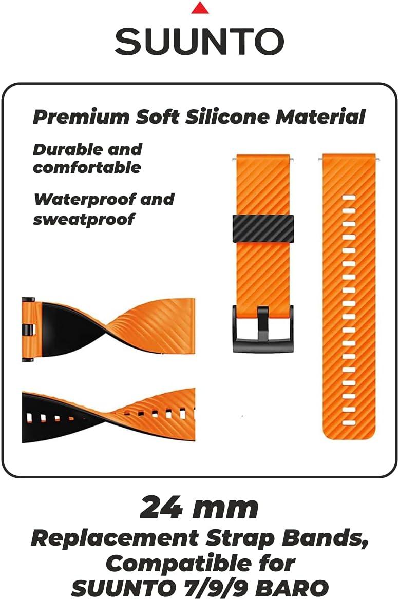 Wearable4U SUUNTO 7 / SUUNTO 9 Soft Silicon Wristband Strap 24mm QuickFix(Orange/Black)